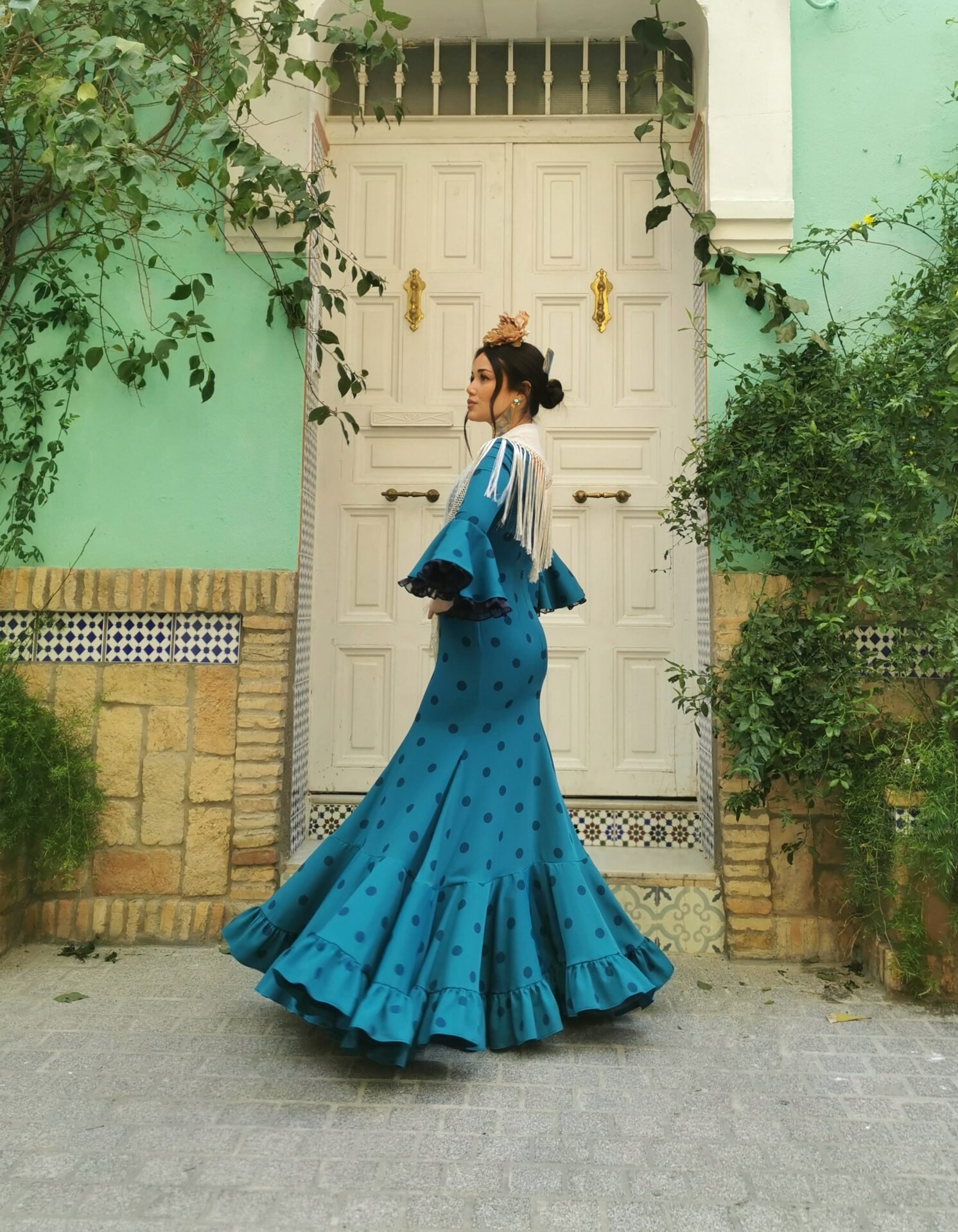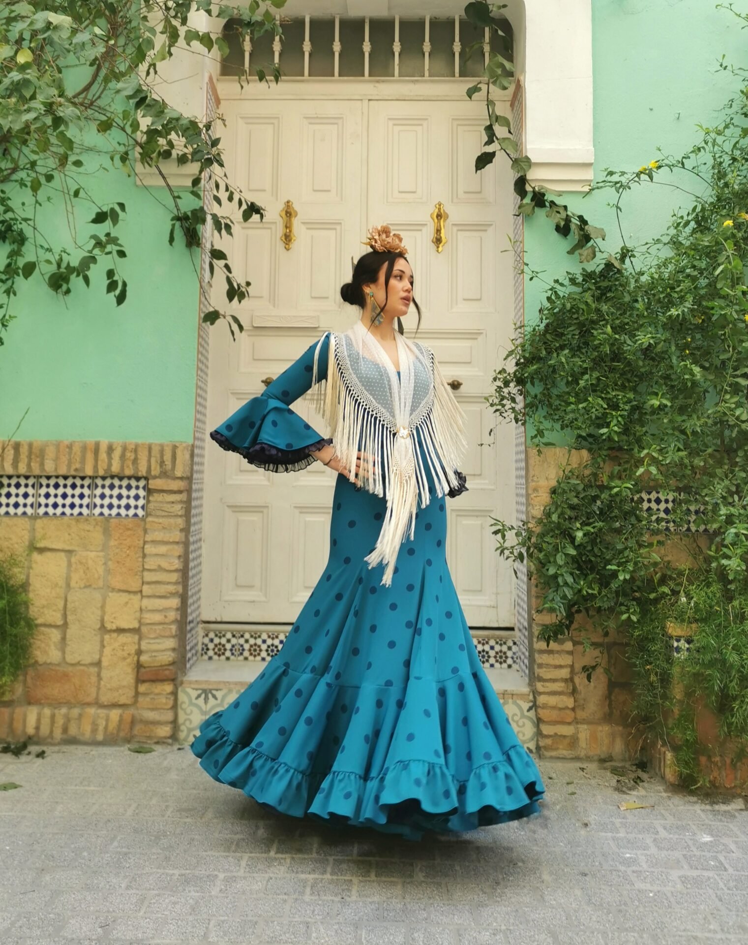 TRAJE GODET AZUL PETRÓLEO LUNAR MARINO